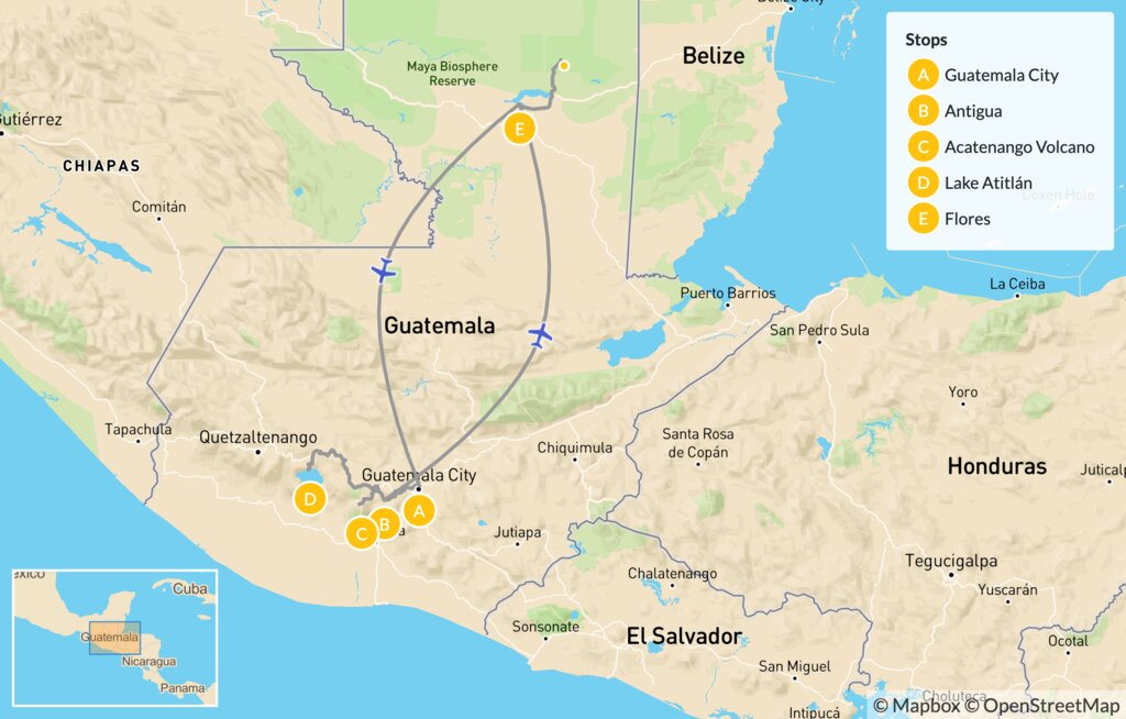 Map of Active Family Adventure in Guatemala: Hiking, Camping & Culture – 14 Days