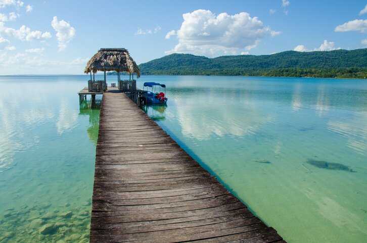 If you didn’t get a chance to visit the Almolonga Valley during the first part of your trip, you can also take a driving tour to historic Ciudad Vieja and some of the other nearby towns and villages. Later today, you’ll take a private transfer to Guatemala City airport and fly north to Flores, a small island town in Lake Petén Itzá and a gateway to national parks and Maya ruins. After you get checked in at your hotel, take a stroll around the island and see some of the sights.
