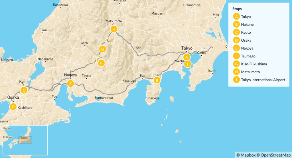 Map of Active Family Tour of Japan: Culture, History & Nature – 14 Days