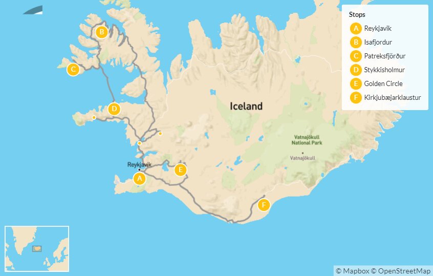 | Day 1 | Arrive in Reykjavik, Domestic Flight to Ísafjörður | Ísafjörður |