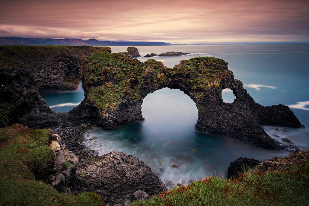 Today’s drive is a non-stop visual feast through some of Iceland’s most scenic landscapes as you snake west around majestic fjords and over steep mountain passes through sub-arctic tundra. First, you’ll drive through the 6-mile-long (9 km) Vestfjarðagöng tunnel and descend to Önundarfjörður, a particularly pretty fjord made more so by curling white-sand “Golden Holt” beach at its head. You’ll then drive through a long, glaciated valley to Dýrafjörður fjord and the historic fishing village of Þingeyri, where you can explore the relics of a medieval assembly hall (“Þing”) behind the village church.