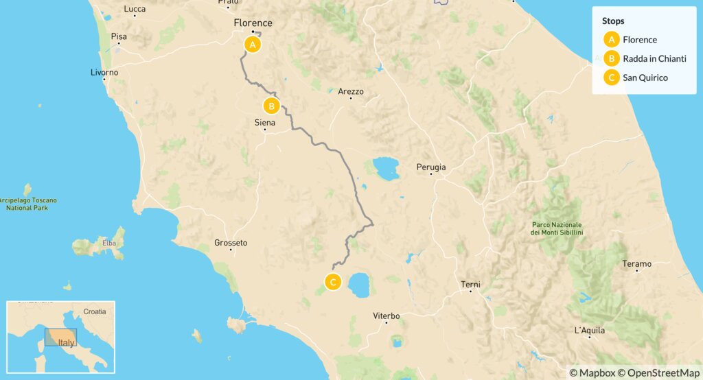 Map of Active Italy: Trekking & Tuscan Heritage – 7 Days