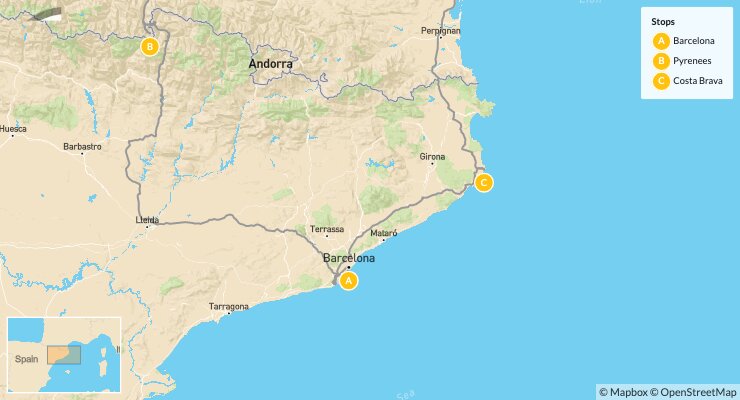 Map of Active Northern Spain: Barcelona, the Pyrenees & Costa Brava – 11 Days