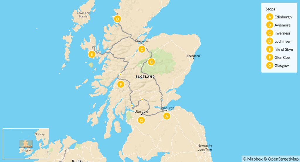 Map of Active Scotland Road Trip: Cairngorms, the NC500 & Isle of Skye – 13 Days