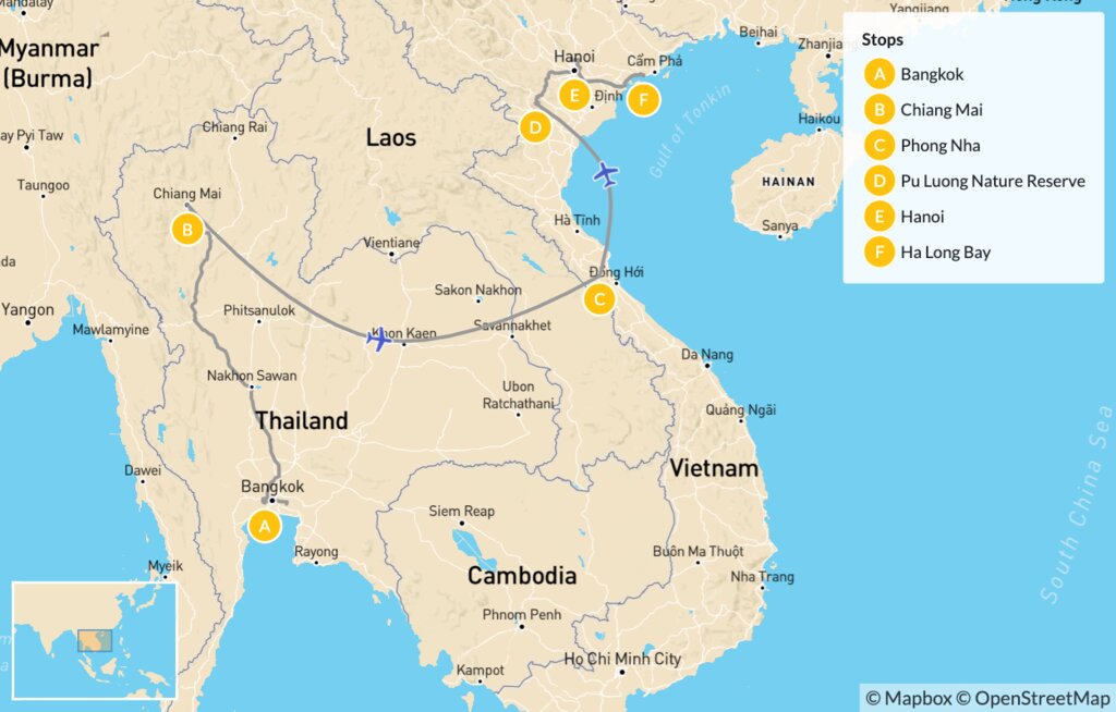 Map of Active Thailand & Vietnam – 15 Days