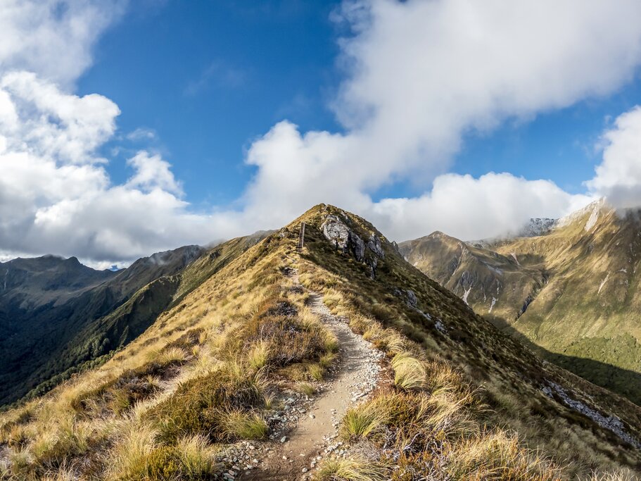 Wake up at Luxmore Hut and get ready to climb gradually to a ridge just below the summit of Mount Luxmore (at 4,830 feet or 1,472 m). Take a 10-minute detour to reach the summit of Mount Luxmore and enjoy brilliant views over the Fiordland National Park landscape. The track descends to a shelter near the Forest Burn Saddle.