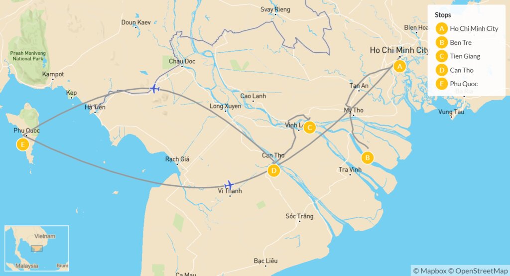 Map of Active Vietnam: Ho Chi Minh City, Can Tho & Phu Quoc – 10 Days