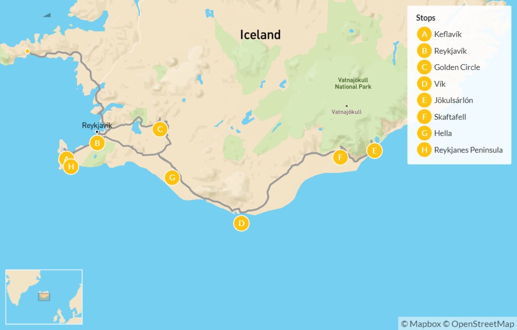 Map of Adrenaline-Filled Luxury in South Iceland – 14 Days