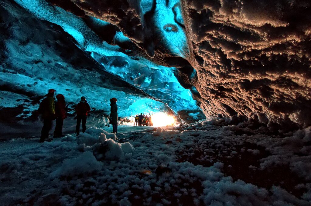 The fun begins when you descend 400 feet (120 m) into the volcano via an open cable lift. With a vast ground space equivalent to three full-sized basketball courts, there’s plenty to explore as you follow a series of pathways toward the magma chamber alongside your expert guide. Take time to admire the beautiful colors and rock formations before returning to the surface. Your guide will drop you back at your hotel in time for dinner and drinks in Reykjavík.