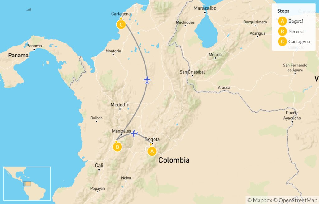 Map of Adventure, Cuisine & Culture in Colombia – 11 Days