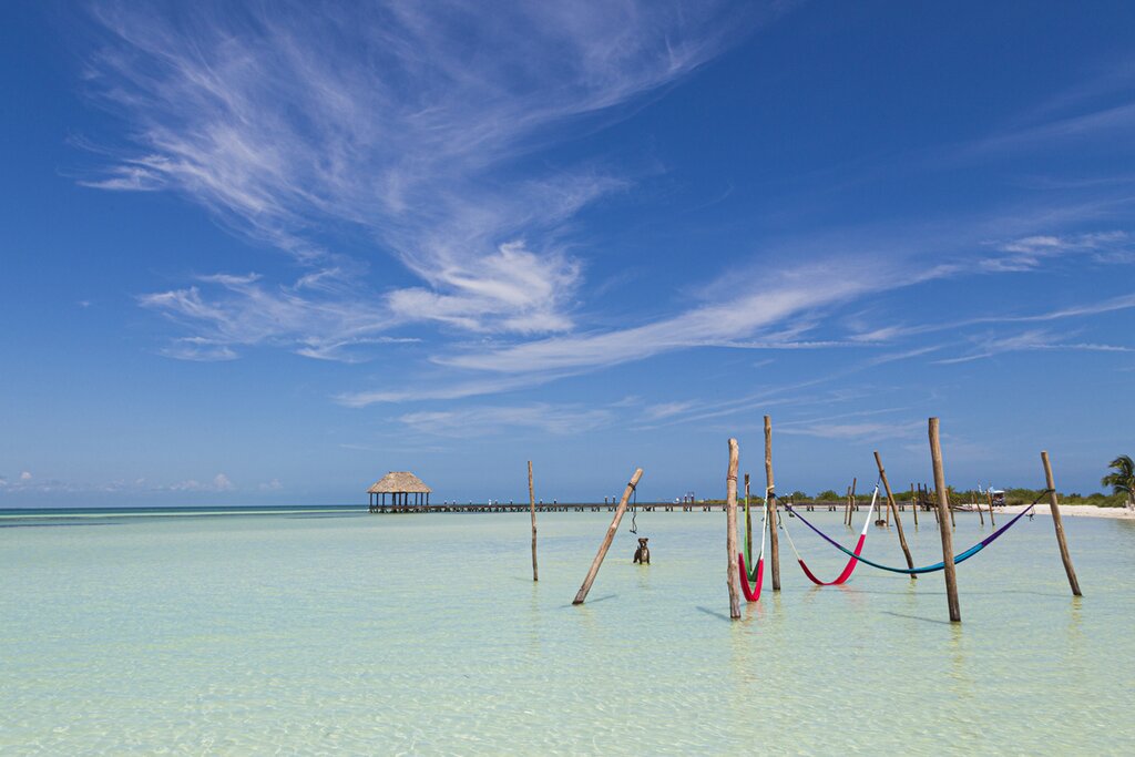 Later, continue 1.5 hours north to the tip of the Yucatán and the town of Chiquilá. Here, you’ll board a ferry for the 15-minute ferry ride to Holbox. This sleepy island couldn’t be more different from the tourist hotspot of Cancún. There are no paved roads in Holbox, so people get around either on foot, by bicycle, or by golf cart. And while there are many activities on offer, one of the most popular is whiling away the hours lazing in a hammock perched in the shallow turquoise waters of Holbox’s shores. Upon arrival, you’ll check into your hotel and have the rest of the day free to do exactly that.
