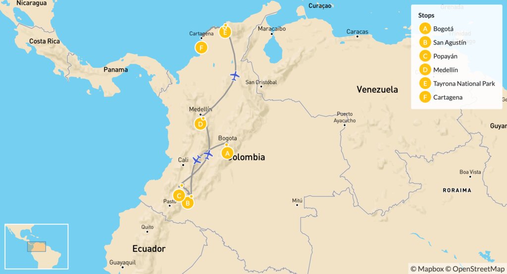 Map of Adventure in Colombia: Culture, Nature, Cuisine & City Life – 14 Days