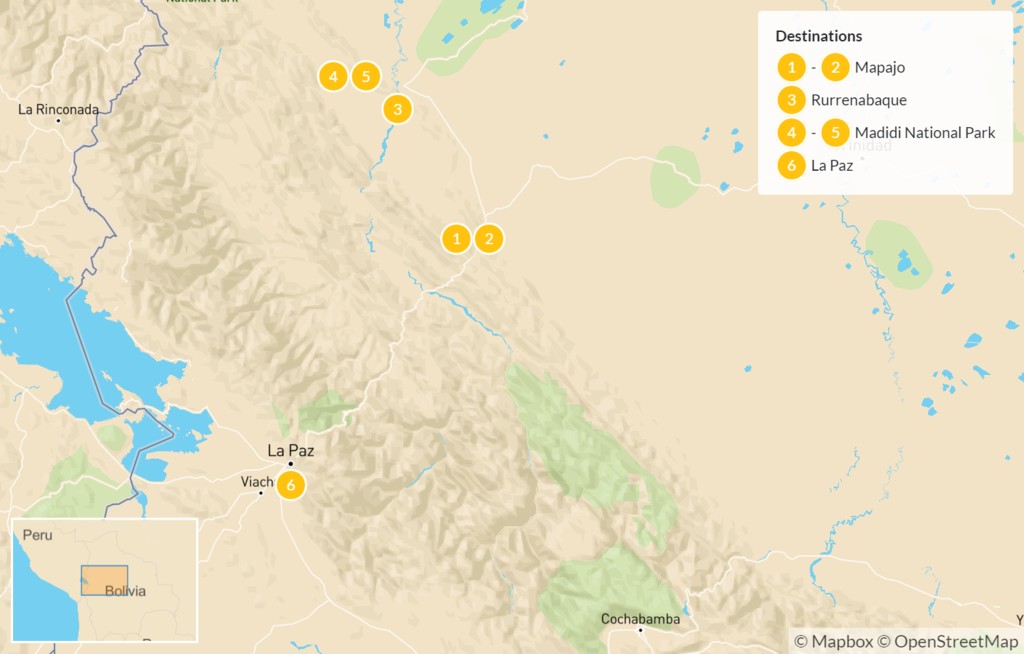 Map of Adventure in the Bolivian Amazon – 6 Days