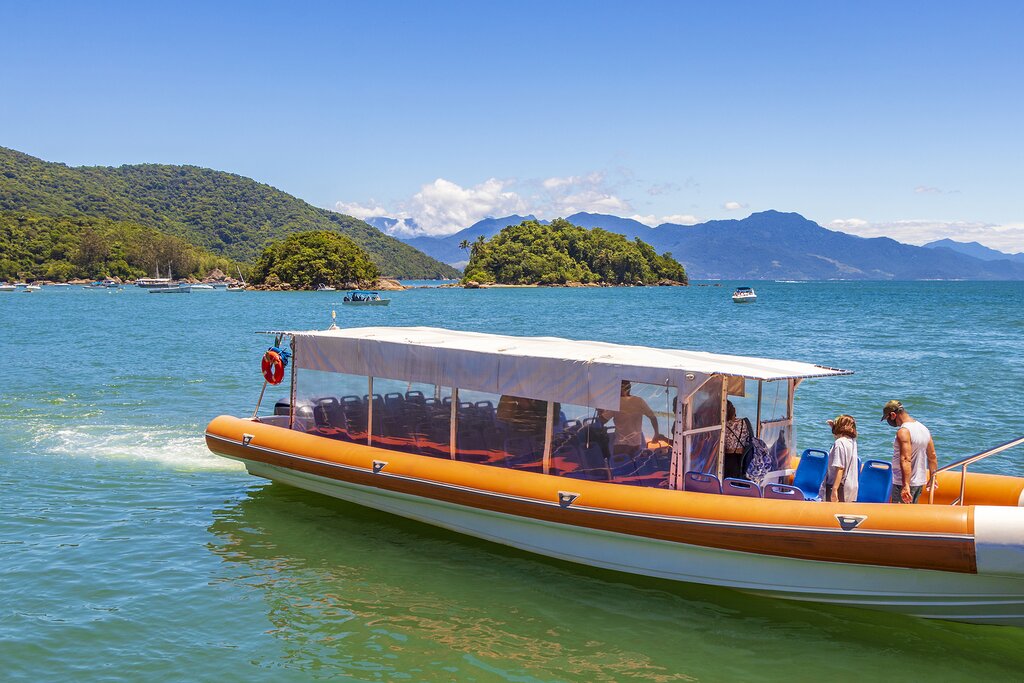 An adventure on the water awaits! Today you’ll enjoy a breathtaking tour around the island. You will explore the south coast, surrounded by the open sea, where the most pristine and sparsely populated beaches are located. There are five stops along the way: Caxadaço, Parnaioca, Aventureiro, Meros, and Maguariquessaba, where you’ll have lunch. Parnaioca is a large beach featuring a river that flows into the sea, forming a small lagoon. Aventureiro is famous for its coconut tree — featured on many postcards of Ilha Grande — and Meros and Maguariquessaba are like natural aquariums. They’re ideal places for snorkeling, as you can observe corals, fish, turtles, and starfish.