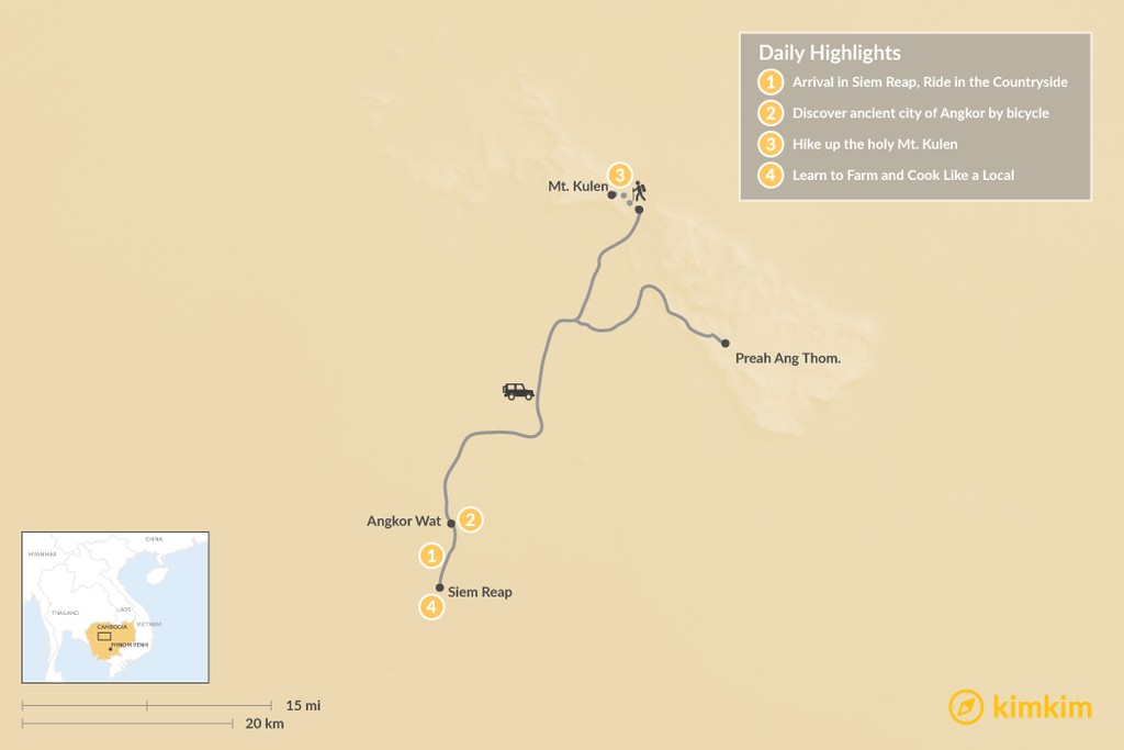 Discover the ancient ruins and delights of Angkor, just outside the bustling modern city of Siem Reap, on this 4-day trip to northern Cambodia. You’ll hike and bike around Angkor’s sacred sites, experience the nightlife of Siem Reap, and learn to cook and farm the Khmer way. _x000D_