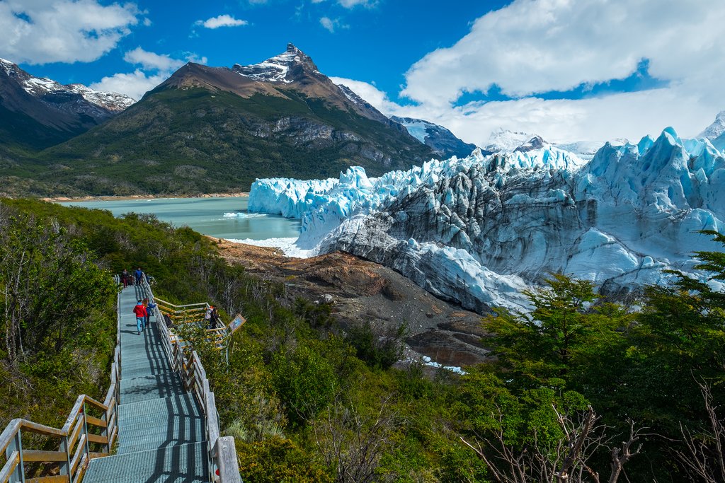 Perito Moreno is not the only glacier in the area, but it is the most famous in the park. It is one of the few advancing glaciers in the world, which is what causes the calving of ice. After arriving, you can admire Perito Moreno from a number of different vantage points thanks to the network of wooden walkways around the glacier. You will also get the chance to see the massive ice wall up close on a boat tour.