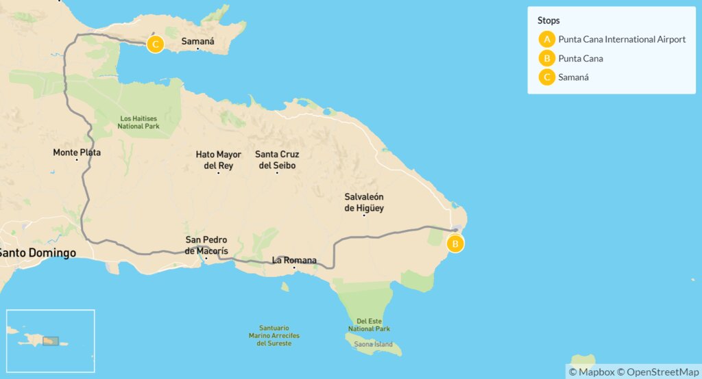 Map of Adventurous Family Tour of the Dominican Republic – 14 Days