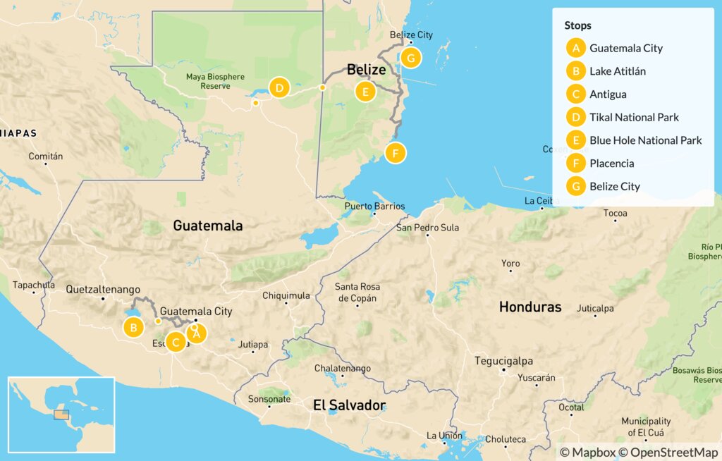 Map of Adventurous Family Trip to Guatemala & Belize – 14 Days