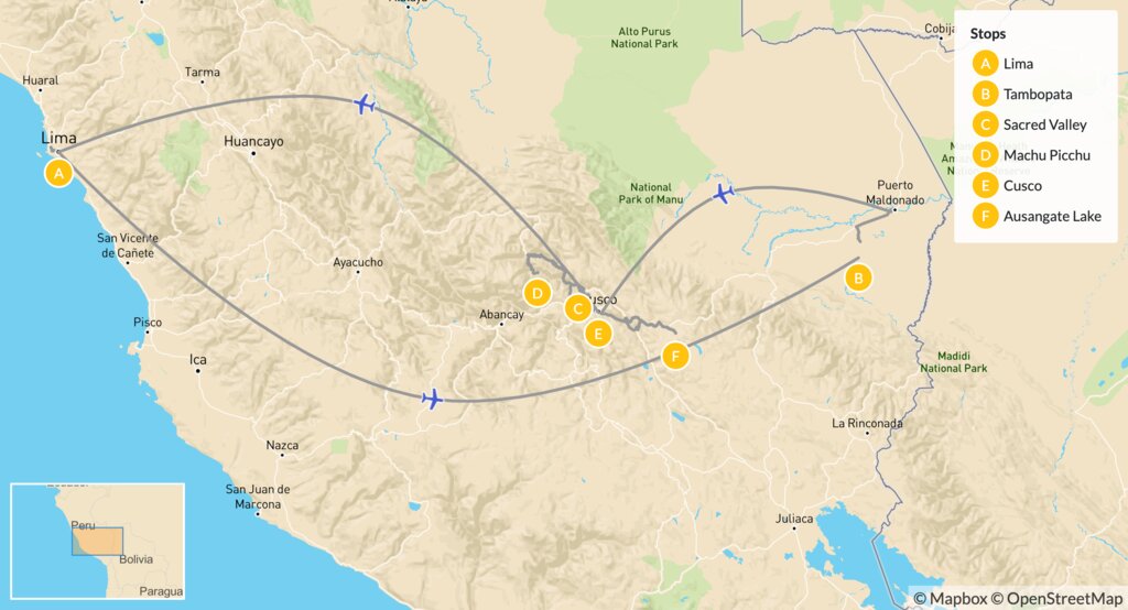 Map of Adventurous Peru for Families: Culture, Nature & Hiking – 14 Days