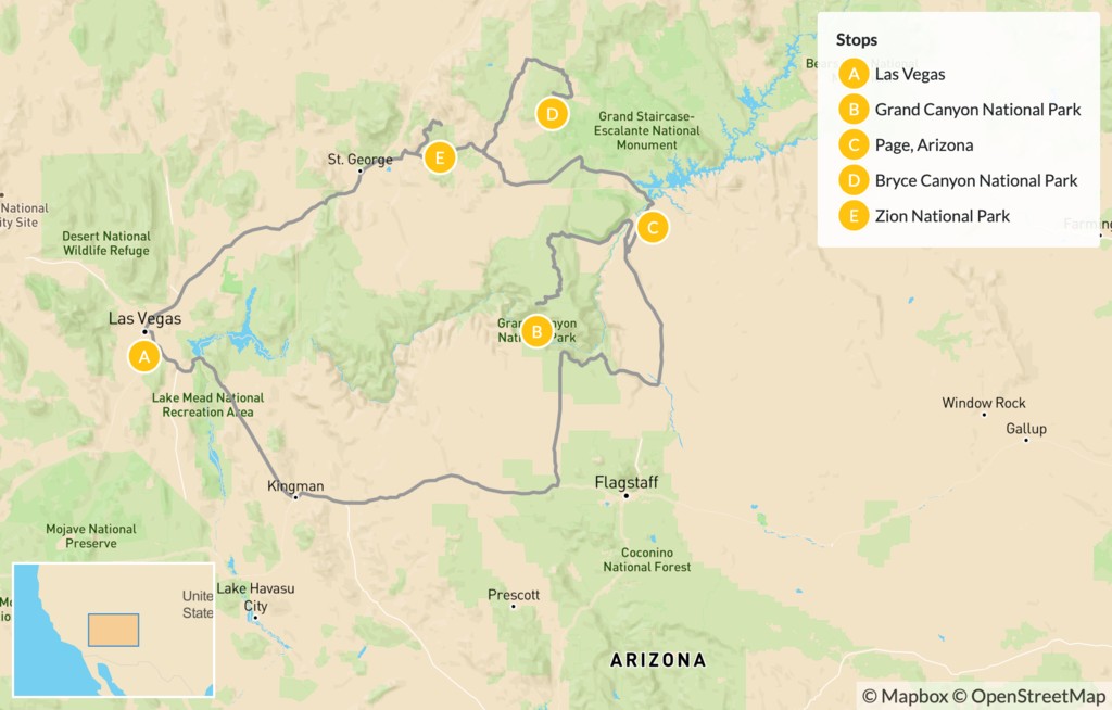 | Day 1 | Drive from Las Vegas to Grand Canyon National Park | Grand Canyon National Park |