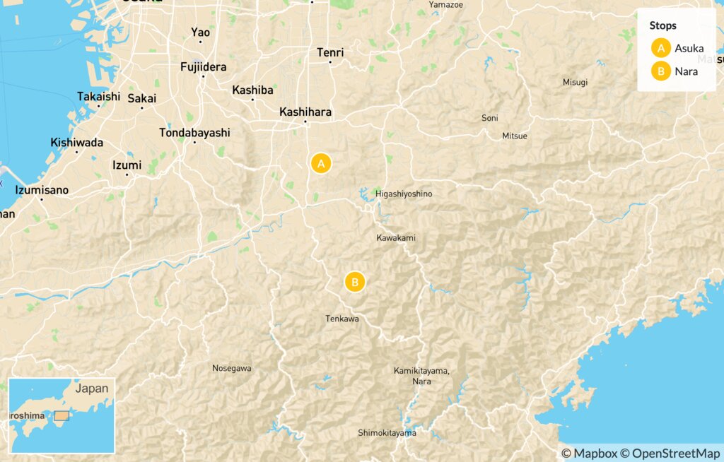 Map of Ancient Capitals of Japan Self-Guided Walking Tour: Asuka and Nara – 5 Days