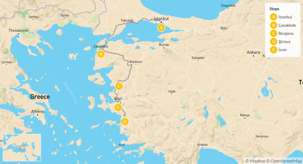 Map of Ancient History & Heritage in Turkey: İstanbul, Çanakkale, Bergama & Şirince – 6 Days