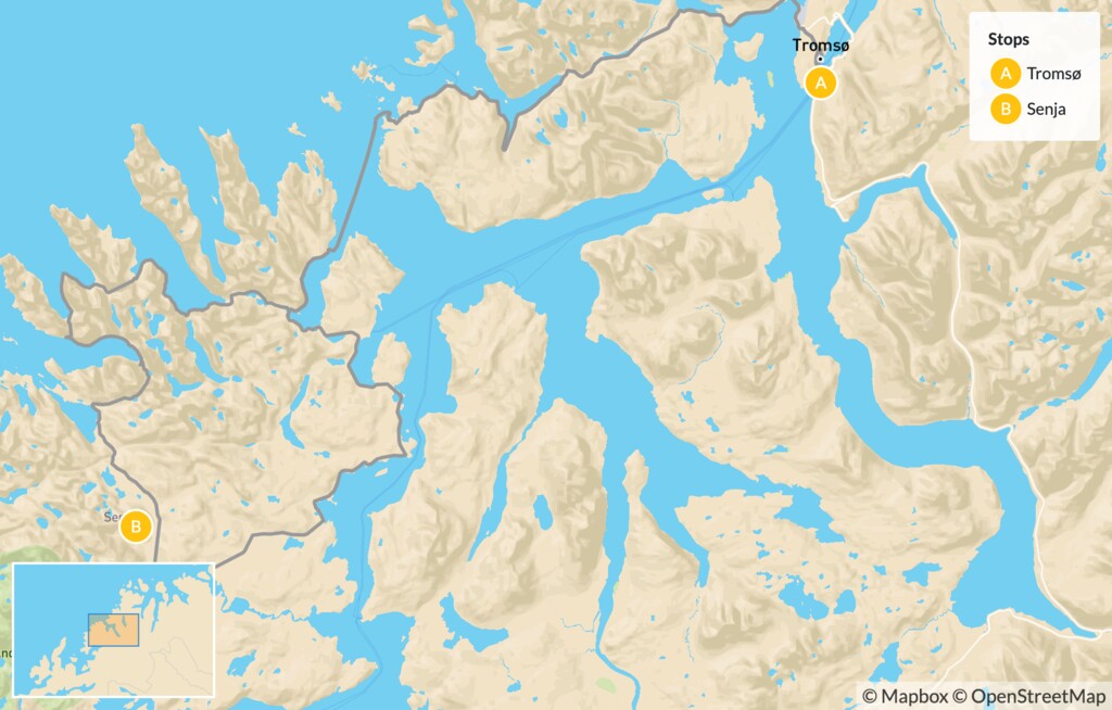 Map of Arctic Norway Summer Road Trip: Tromsø & Senja – 7 Days