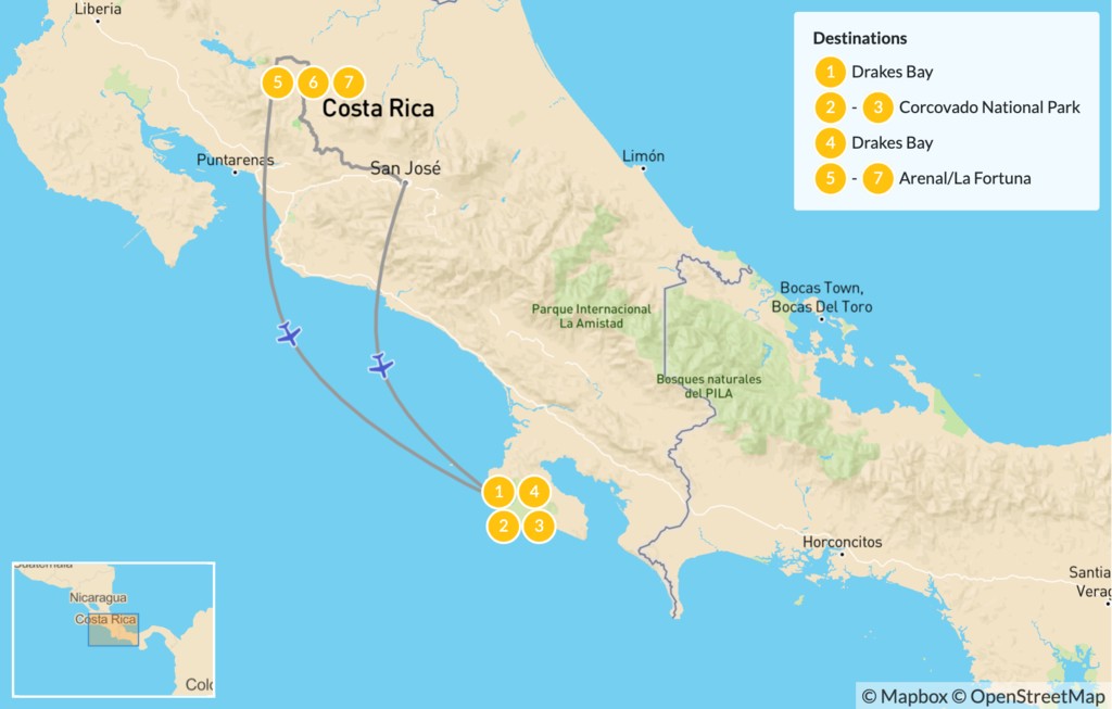 Map of Arenal and Osa Peninsula Luxury Getaway – 8 Days