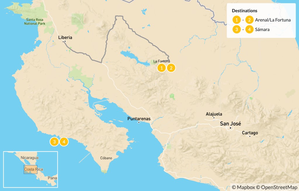 Map of Arenal Volcano & Playa Sámara Excursion – 5 Days