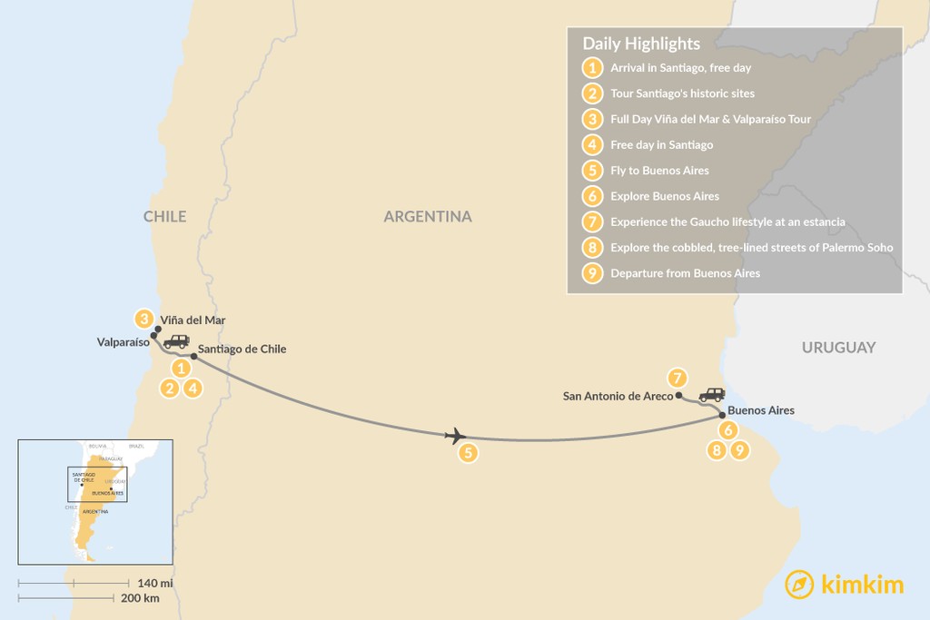 Map of Argentina & Chile’s Capital Cities – 9 Days