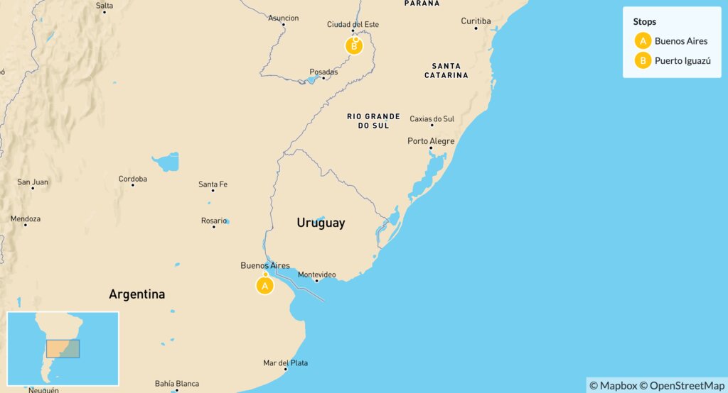 Map of Argentina Family Adventure: Buenos Aires & Iguazú Falls – 7 Days