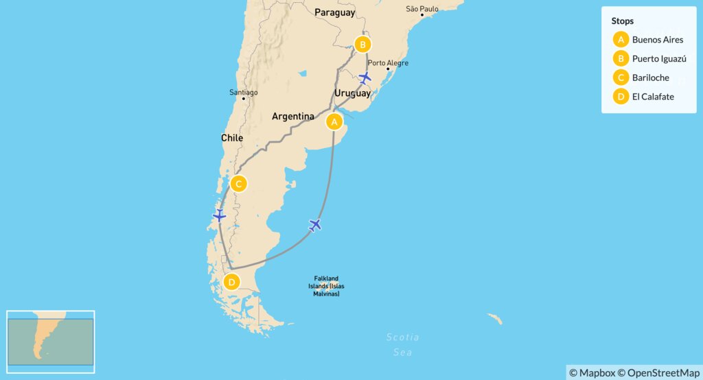 Map of Argentina Family Discovery: Culture, Nature & Wildlife – 14 Days