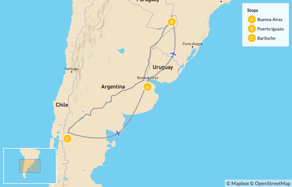 Map of Argentina Family Tour: Buenos Aires, Puerto Iguazú & Bariloche – 10 Days