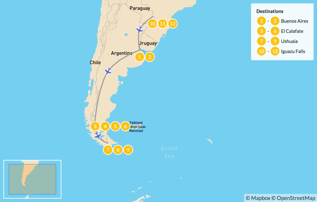 | Day 10 | Fly from Ushuaia to Iguazú | Iguazu Falls |