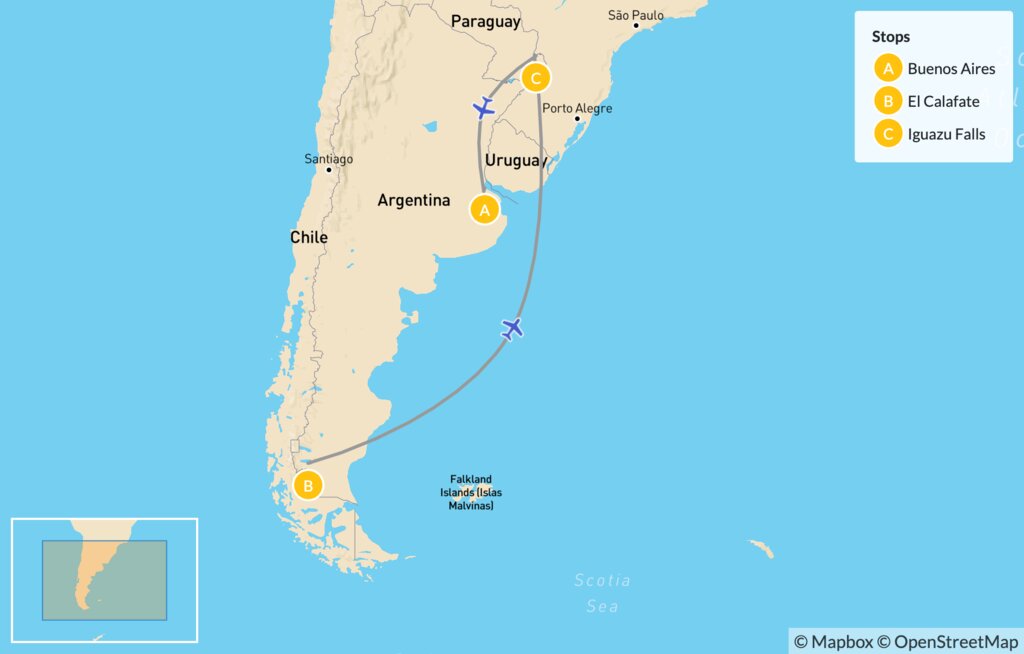 Map of Argentina for Families: Buenos Aires, El Calafate & Iguazú Falls – 7 Days