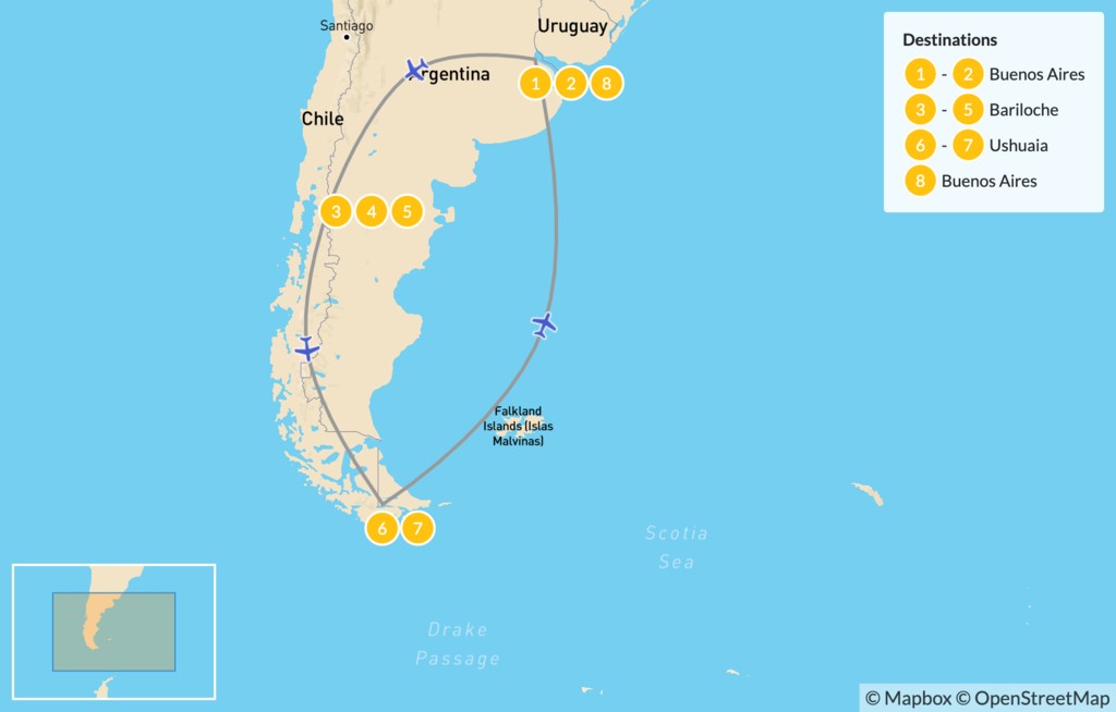 | Day 8 | Fly from Ushuaia to Buenos Aires | Buenos Aires |