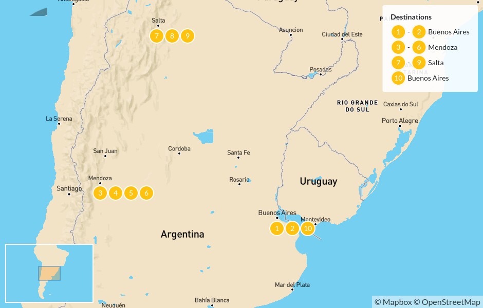 Map of Argentina Wine & Colours – 11 Days