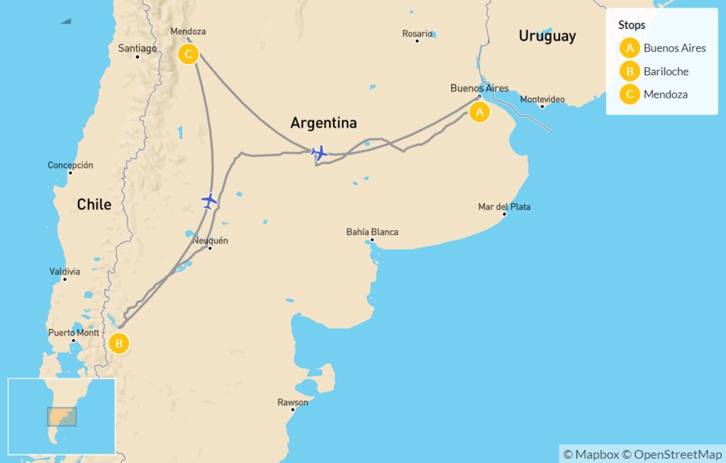 Map of Argentina’s Lake District & Wine Country Adventure – 7 Days
