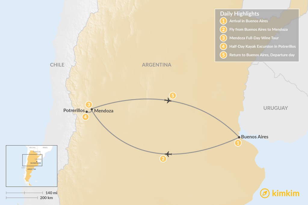 Map of Argentina’s Wine Country: Buenos Aires & Mendoza – 5 Days