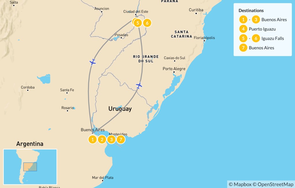 Map of Argentine Culture & Waterfalls Experience – 8 Days
