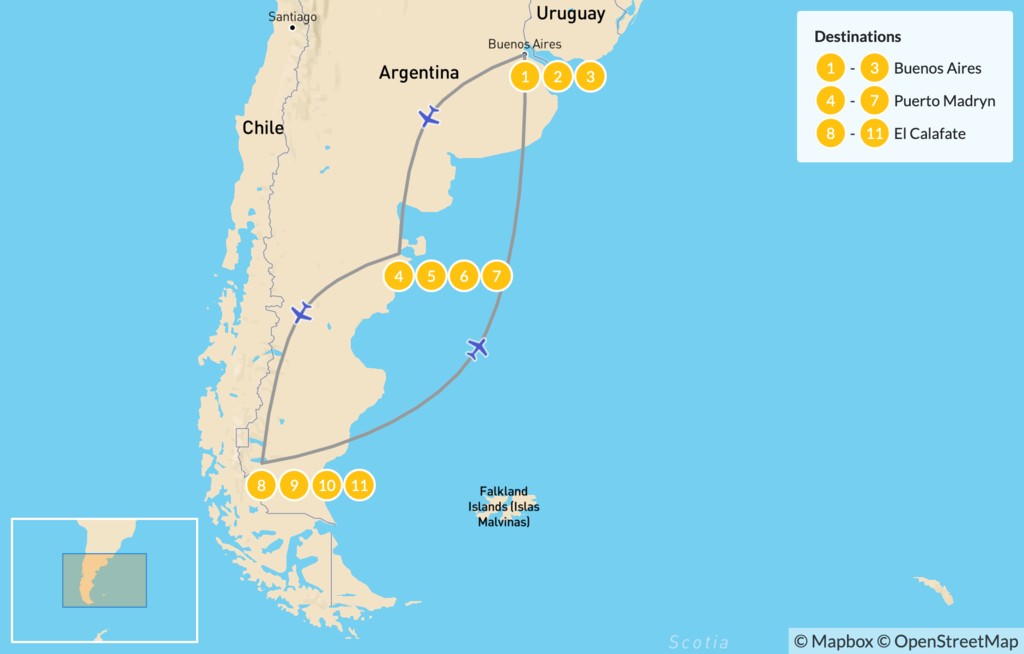 Map of Argentine Wildlife & Glaciers Adventure – 12 Days