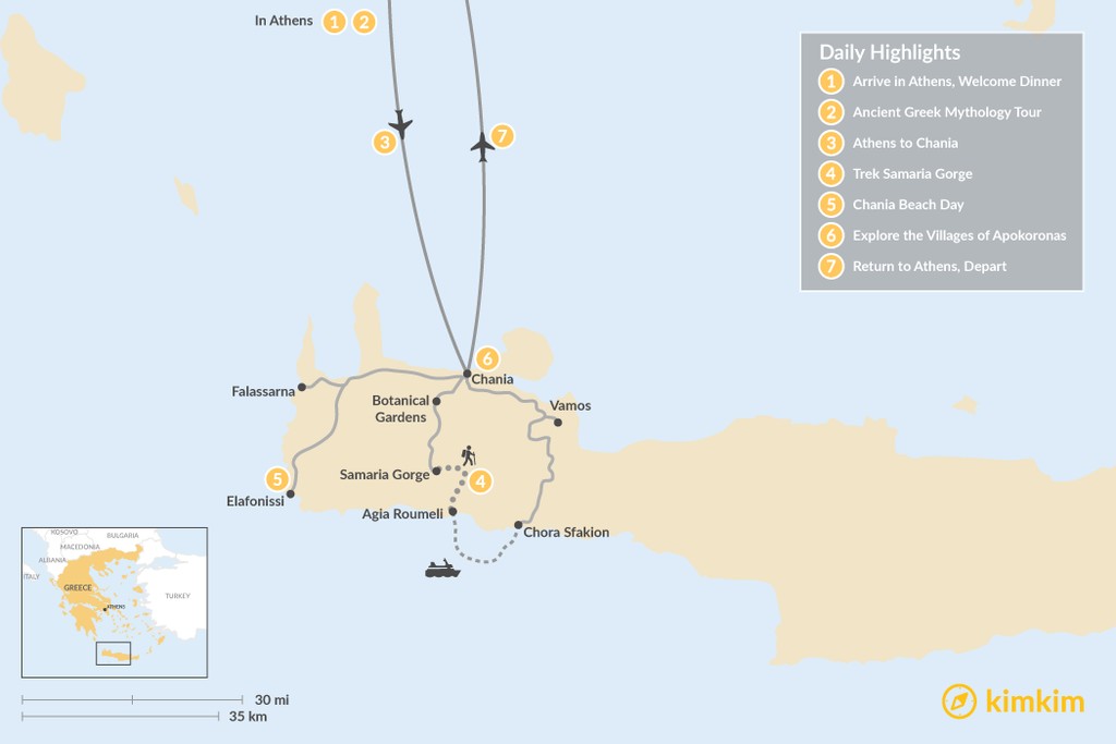 Spend a week with your family exploring Greece’s largest island on this 7-day itinerary. After a start up on the Athens Acropolis, you’ll head to Crete to experience the depths of the Samaria Gorge, sunny shores of Chania’s beaches, and traditional stone villages of Apokoronas with tales to keep everyone interested.