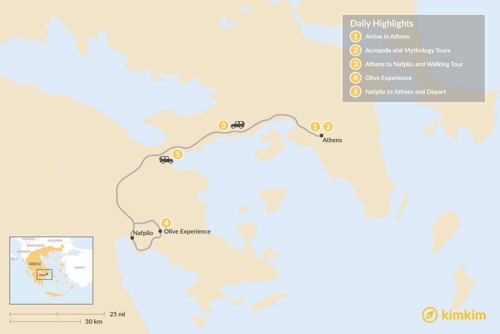 Live like a local in Greece’s idyllic Argolic Gulf with this 5-day itinerary. You’ll explore Athens for a few days, including a unique guided tour of some of the city’s most important ancient sites before you head to seaside Nafplio, home to winding streets and a historic water fortress. Explore this beautiful area of mainland Greece, then get hands-on in an olive grove before you head home.