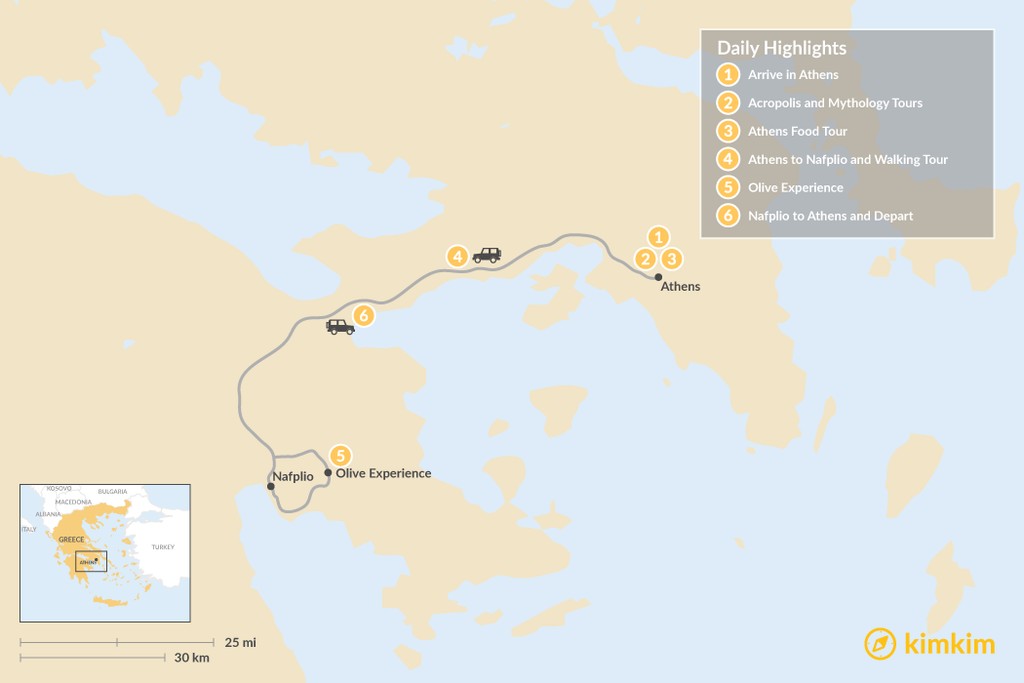 Live like a local in Greece’s idyllic Argolic Gulf with this 6-day itinerary. You’ll explore Athens for a few days, including a unique guided tour of some of the city’s most important ancient sites before you head to seaside Nafplio, home to winding streets and a historic water fortress. Explore this beautiful area of mainland Greece, then get hands-on in an olive grove before you head home.