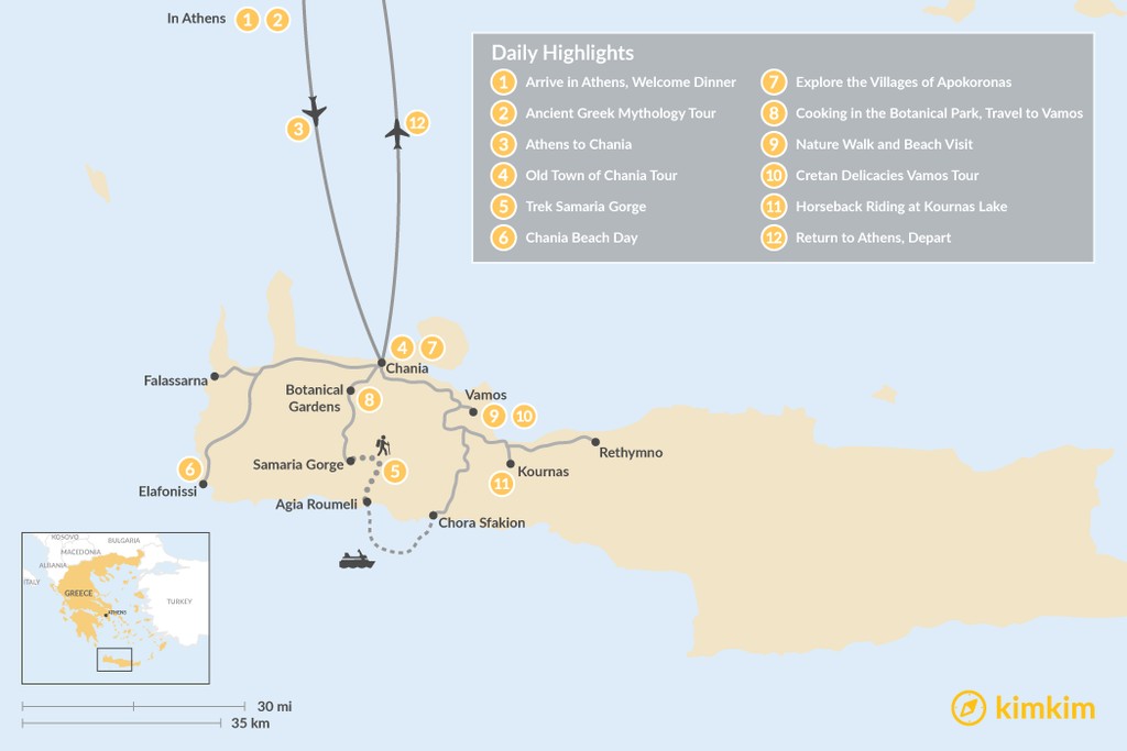 Come to Crete with childlike enthusiasm on this 12-day itinerary. After an Athenian mythology tour, the island awaits you, with Venetian architecture, sprawling natural landscapes, and historic stone villages ready to be explored.