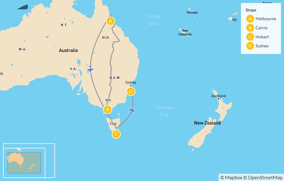 Map of Australia Cities & Wildlife Adventure for Families – 14 Days