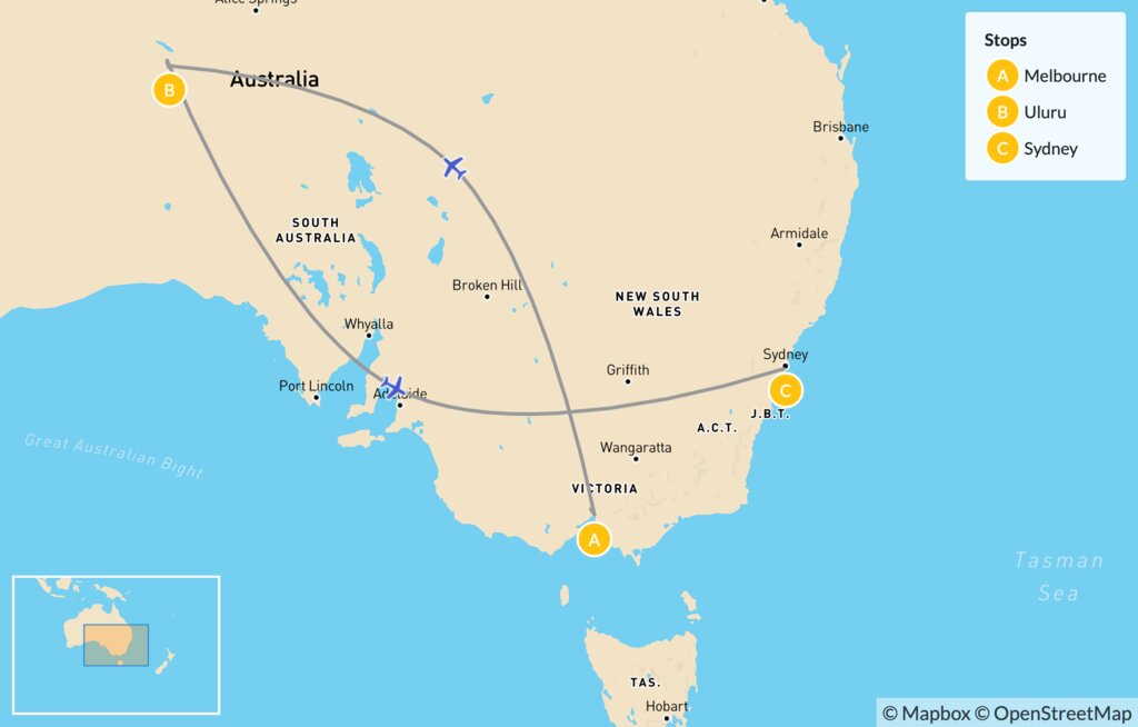 Map of Australia Honeymoon Adventure: Melbourne, Uluru & Sydney – 7 Days