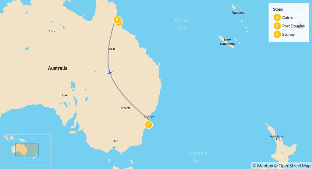 Map of Australia Laid-Back Luxury Tour: Port Douglas & Sydney – 7 Days