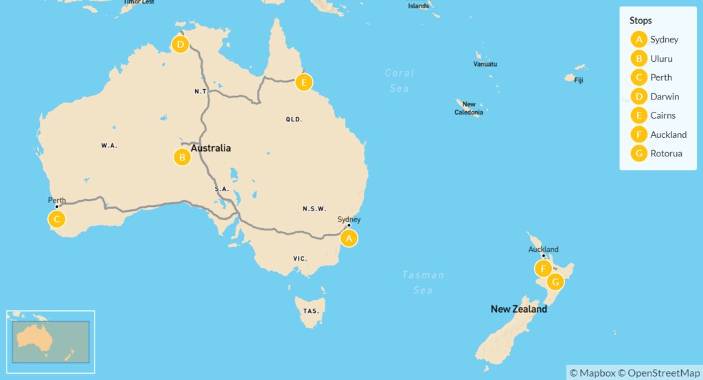 Map of Australia & New Zealand Cultural Journey – 21 Days