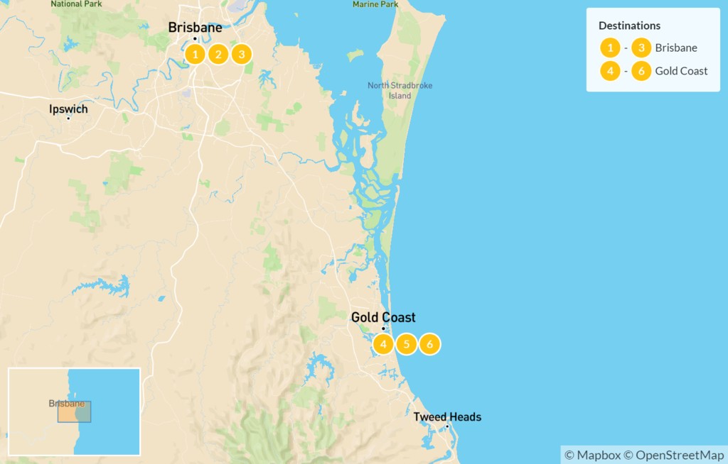 Map of Australian Family Holiday: Brisbane & Gold Coast – 7 Days
